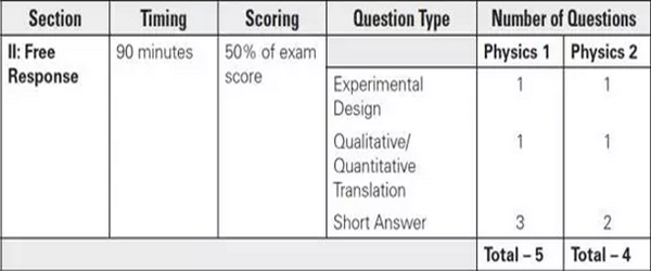 AP物理2的解答題共4道,明確將考察一道實驗設計題,一道計算題,兩道問答題,都是要求在90分鐘內答完,分值占50%。