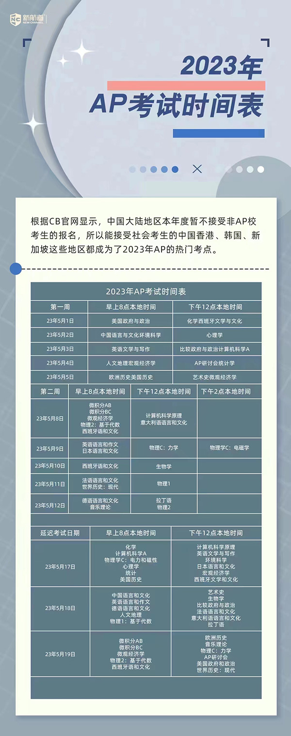 根據CB官網顯示,中國大陸地區本年度暫不接受非AP校考生的報名,所以能接受社會考生的中國香港、韓國、新加坡這些地區都成為了2023年AP的熱門考點。
