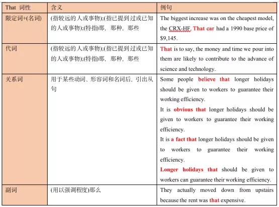 大家對that 應該并不陌生,我們先用一個圖表回顧一下它的基本用法。