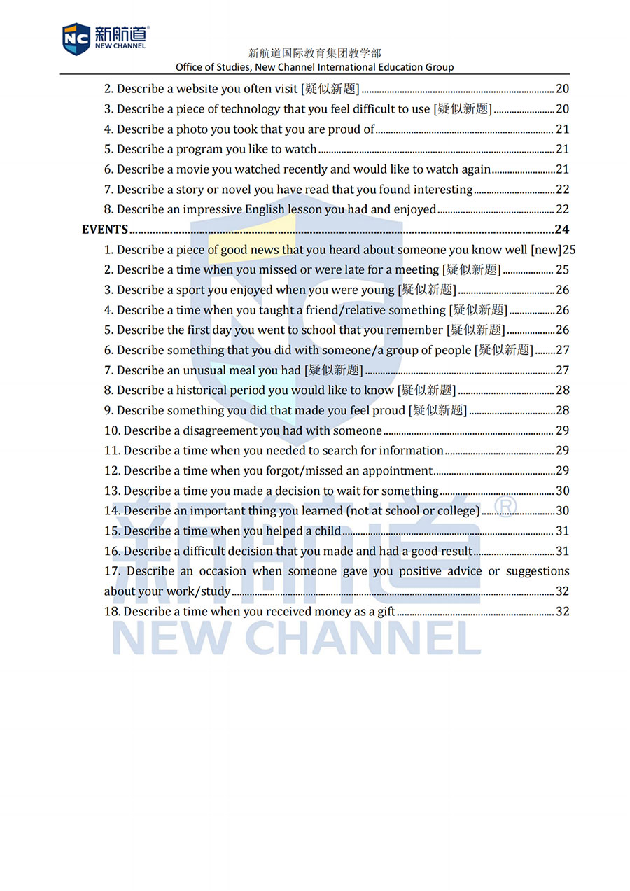 新航道根據歷史換題情況以及近一年的口語出題趨勢,分析預測了 2023年1-4月份可能出現的新題,為了方便1月-4月初考口語的烤鴨備考。這份預測,包含1月-4月可能會更新的新題以及預計1-4月會考到的舊題,后續還會更新整個題庫。