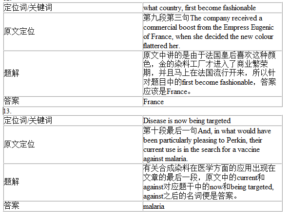 Question 8—13:(the) rich、commercial、mauve、(Robert)Pullar、France、malaria