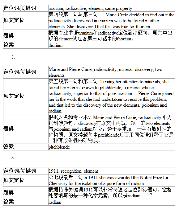 Question 7—13:thorium、pitchblende、radium、soldiers、illness、neutron、leukaemia/leukemia