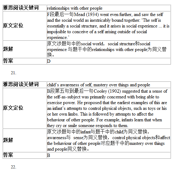 解析:人名理論配對題的特點是亂序和同義替換。首先,根據(jù)人名去原文中定位,找到其提出的理論(大多數(shù)在賓語從句中),然后判斷哪些理論與題目中的理論形成同義替換,從而進(jìn)行配對。