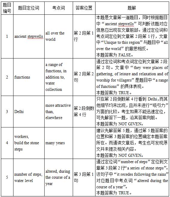 解答本題型時,應先看題目,將其中的關鍵詞畫出,再到文章中進行定位,查找關鍵詞的同義替換。如果關鍵詞只是進行了同義替換,邏輯并未改變,則答案為TRUE;如果關鍵詞中有一個性質錯誤或者意義相反,則答案為FALSE;如果關鍵詞有一個缺失,則答案為NOT GIVEN。