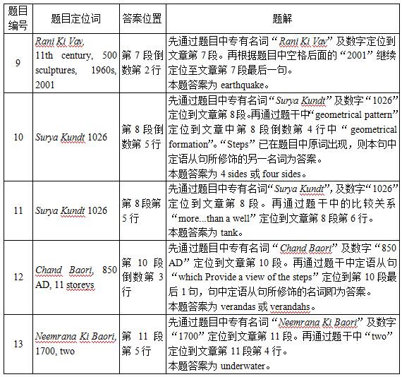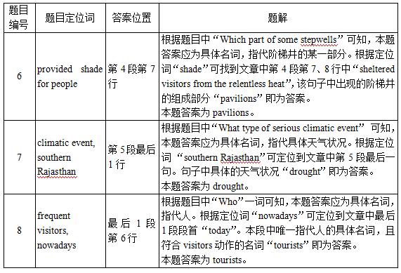 通過表格中專有名詞可迅速定位到文章相應段落。然后根據題目句子中的搭配來判斷缺失單詞的詞性及詞義。