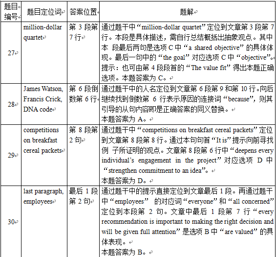 根據(jù)題目中的定位調(diào)回到文章中尋找對應信息,然后再回到選項中進行同義替換即可。本題型通常按照文章敘述順序出題。