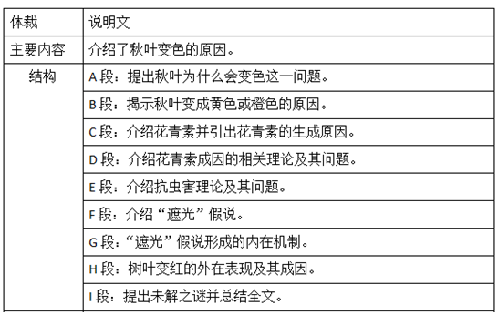 16Some evidence, a theory. the purpose of the red leavesH段文章本段除段首概括句外,其余句子皆是“some evidence”的具體內(nèi)容。