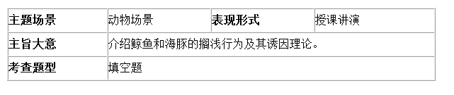 31-40題為筆記填空題,在解答此類問題時,考生要靈活運用題干中已知的信息來推測空格處要填寫的答案類別,尤其要注意表格中的黑體字,它們往往可以作為定位詞指引考生聽錄音時需要重點注意的地方。此外,根據(jù)32題后的定語從句推測出應填寫的內(nèi)容與海洋動物的導航系統(tǒng)有關(guān)。