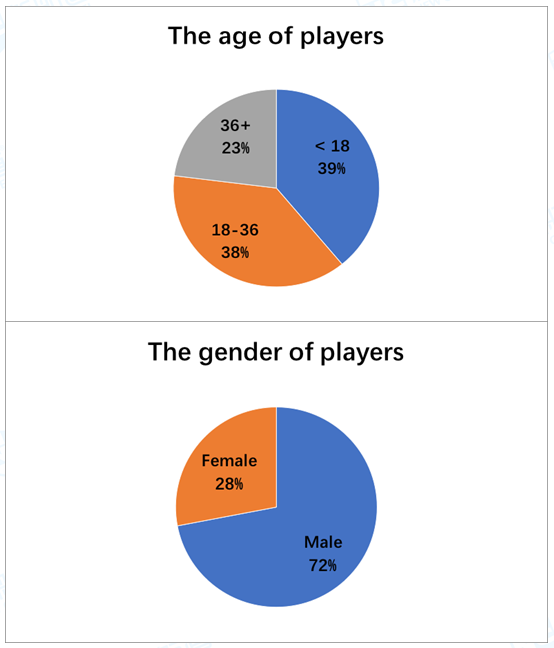 From the first chart, it is evidently shown that children and teenagers and those in their early adulthood constituted the most proportion of game players, 38 % and 39% respectively in each age group. The-over-36-year-olds were less attracted by electronic games, albeit there were still almost a quarter of adults spending time on this.