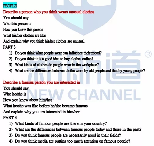在Part 2話題中,有舊題也有部分新題,下面是每個主題的部分話題,共同學們參考。