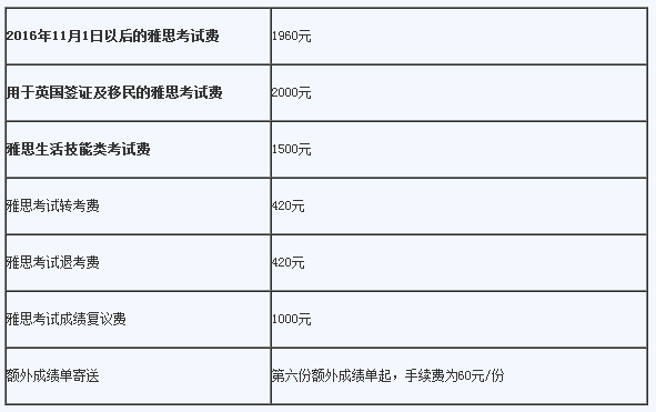 雅思考試相關費用維持不變,各項收費標準如下: