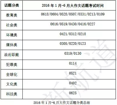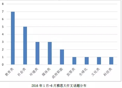 在2016年上半年的考試中,教育類和社會發展類話題仍然是重頭戲(其中教育話題出現了7次,社會發展類出現5次)。 同樣,環境類和媒體類以及政府職能也是不可忽視的重點話題,所以同學們下半年還是要充分準備相關素材。