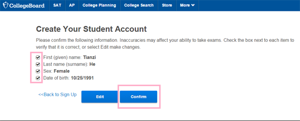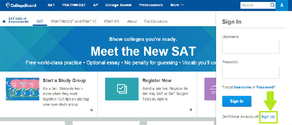 1.SAT考試網上報名之前需要進行注冊,登陸 College Board(sat.collegeboard.org)