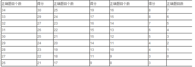 計算新托福閱讀的分數,不要計算對多少題,而是算拿到多少原始分“Raw Point Total(0-45)”,然后再參照評分表,計算最后的分數(0-30)。