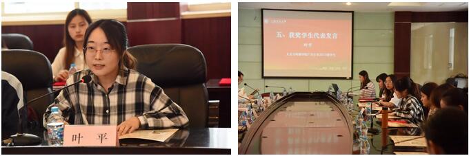 一等獎獲得者、人文與傳播學院的葉平同學作為胡敏英語勵志獎學金獲獎學生代表發表了獲獎感言。她表示,很高興能在大四即將畢業的關口獲得胡敏英語勵志獎學金,本次獎學金是一份相當重要的認可,也告訴自己堅持喜歡的東西是一件多么有意義的事情。
