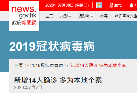 接著到了7月7日,也就是前天,香港衛(wèi)生署發(fā)表公告,稱香港新增14人確診,多為本地個(gè)案。
