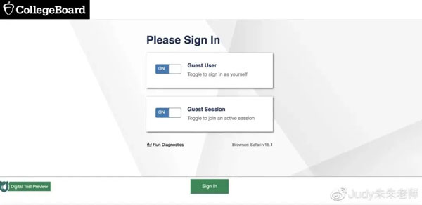 之后點擊Preview the Student Digital Test Experience,之后直接點擊sign in就可以進入體驗界面了。