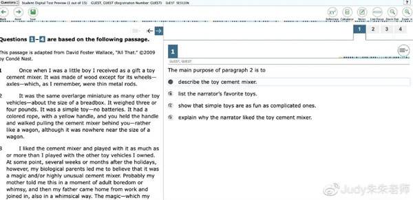 如果對機考好奇的同學,其實可以在SAT機考的主頁上可以提前體驗考試界面,機考的體驗可以去官方主頁: