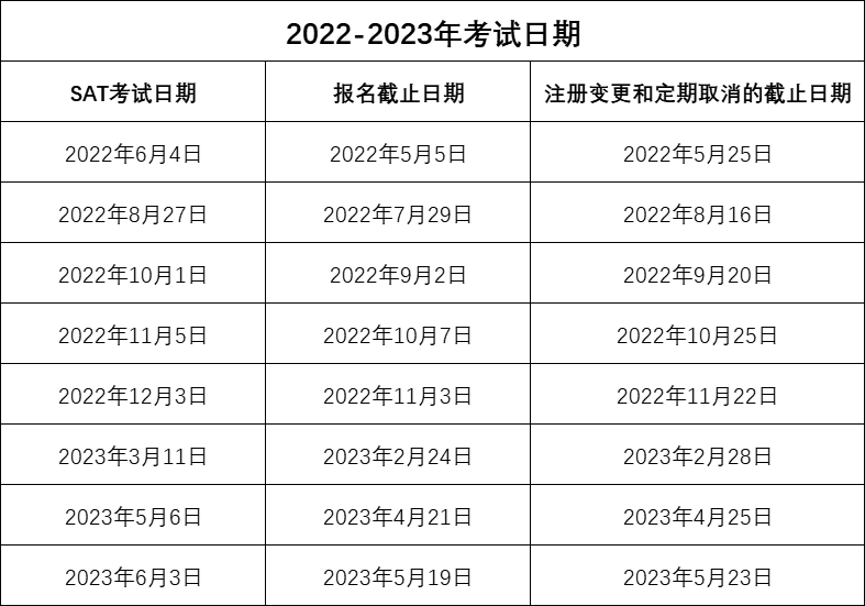 CB官方官宣了2022-2023年SAT的考試時間,平時College Board往往會在5月底或者是6月初放出,今年比往年稍微早了那么幾天。