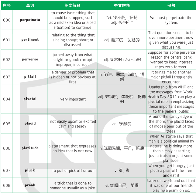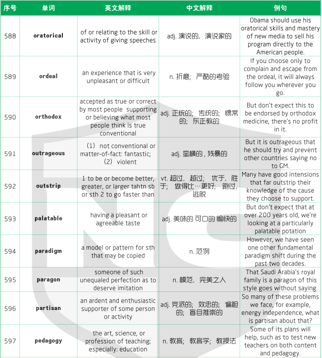 SAT想考高分,詞匯是最基礎的,如果SAT詞匯量不夠,是不可能取得高分成績的。上海新航道SAT培訓學校小編給大家?guī)砹?500個新SAT詞匯(十三)介紹式分別為單詞、英語解釋、中文解釋和例句。上一篇新SAT詞匯表介紹了從511到563的新詞匯,本篇介紹第564個到625個新SAT詞匯。新SAT高頻詞匯總匯總,請點擊:1500個新SAT高頻詞匯總及PDF下載