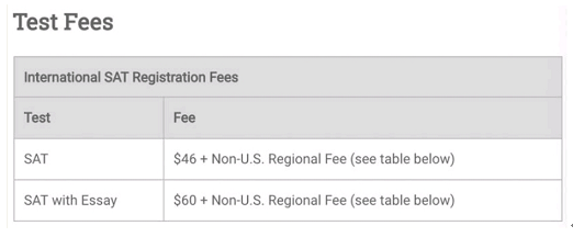 分版本的報名系統顯示,從2016年3月份的新SAT開始,考生可以開始選擇是否參加Esay考試,并在報名系統上做出相應選擇。不含Essy的SAT(報名系統顯示SAT)考試注冊費用為46美元,而含有Ess的SAT(報名系統顯示 SAT with Esay)考試注冊費用為60美元,國際考生還需按照個人情況繳納其他費用。下圖為新SAT考試報名界面: