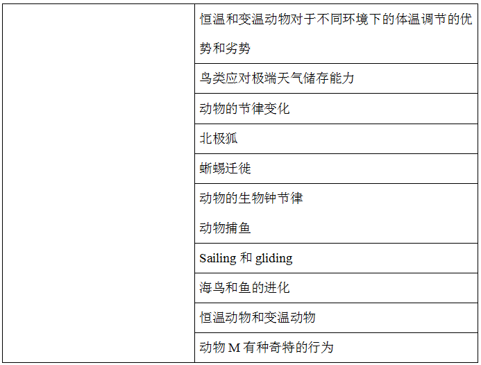 動物類中常考的動物是鳥類、海洋生物、溫度調節、進化發展、生物節奏。
