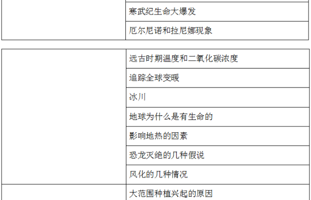地質類主要討論板塊運動、恐龍滅絕、冰川和水。