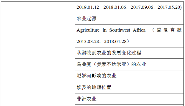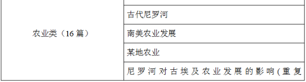 農業類涉及到尼羅河對農業影響以及農業起源,還有游牧業向農業過渡。