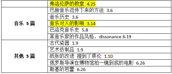 此外,音樂(lè)類涉及樂(lè)器歷史,如巴赫音樂(lè)和巴洛克音樂(lè)的發(fā)展。建筑學(xué)和文學(xué)類考察內(nèi)容話題較為常規(guī),文章體裁仍以建筑介紹,文學(xué)發(fā)展為主要話題。