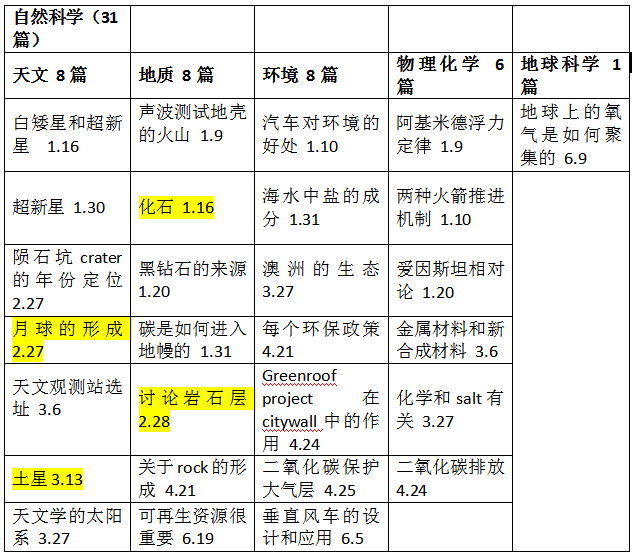 自然科學(xué)中天文學(xué)、地質(zhì)學(xué)和環(huán)境學(xué)勢(shì)均力敵,物理化學(xué)類型篇章考察比重有所上升,地球科學(xué)話題再現(xiàn)。天文學(xué)上半年的網(wǎng)紅詞是白矮星(16年的老題)和土星,并且不停重復(fù);地質(zhì)學(xué)考察了地層、火山和石頭等常規(guī)內(nèi)容;物理類型話題有老題重考的現(xiàn)象,如愛(ài)因斯坦相對(duì)論。