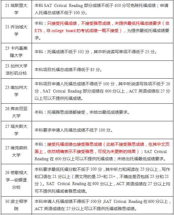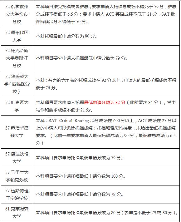 與往年相比,2017年美國(guó)大學(xué)對(duì)本科申請(qǐng)者的托福成績(jī)要求有了一些調(diào)整,除此之外還有SAT成績(jī)要求的一些變化,匯總給大家。排名依然用的是2016年US NEWS的排名。