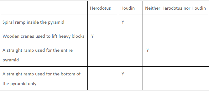 The oldest recorded one is by the Greek historian Herodotus. He visited Egypt around 450 B.C.E., when the Pyramid was already 2000 years old. His theory was that cranes were used, much like we use cranes today to construct tall buildings. And Herodotus may have seen Egyptians using cranes made of wood. But the problem with this theory has to do with simple mechanics. A crane needs a wide and sturdy base to stand on or it will fall over. Well, as you get toward the top of the Pyramid, there’s really no place for a crane to stand. The stone blocks are too narrow to provide a base. Well, so much for that theory.