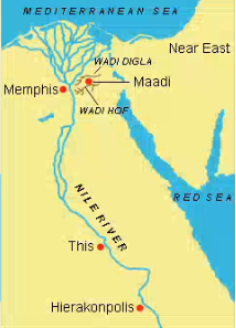 Furthermore, the Memphis region seems to have been favorably located for the control not only of river-based trade but also of desert trade routes. The two outwash fans in the area gave access to the extensive wadi systems of the eastern desert. In predynastic times, the Wadi Digla may have served as a trade route between the Memphis region and the Near East, to judge from the unusual concentration of foreign artifacts found in the predynastic settlement of Maadi. Access to, and control of, trade routes between Egypt and the Near East seems to have been a preoccupation of Egypt’s rulers during the period of state formation. The desire to monopolize foreign trade may have been one of the primary factors behind the political unification of Egypt. The foundation of the national capital at the junction of an important trade route with the Nile valley is not likely to have been accidental. Moreover, the Wadis Hof and Digla provided the Memphis region with accessible desert pasturage. As was the case with the cities of Hierakonpolis and Elkab, the combination within the same area of both desert pasturage and alluvial arable land (land suitable for growing crops) was a particularly attractive one for early settlement; this combination no doubt contributed to the prosperity of the Memphis region from early predynastic times.